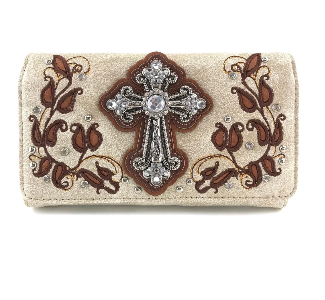 Floral Leaves Cross Western Crossbody Wallet