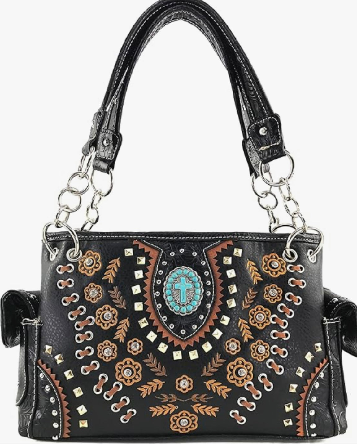 Turquoise Cross Gold Flower Women's Handbag Purse