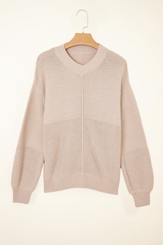 Add a touch of fun to your closet with this sweater featuring a playful blend of textured knits in a single hue. It boasts a cute round neckline, charming puff sleeves, and a front seam that adds character. The relaxed fit keeps it comfy while looking effortlessly trendy.
