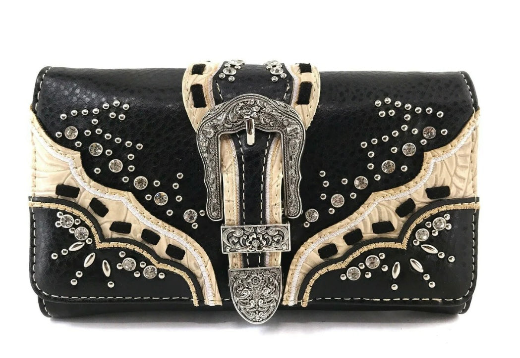 Studded Rhinestone Buckle Women Crossbody Wallet