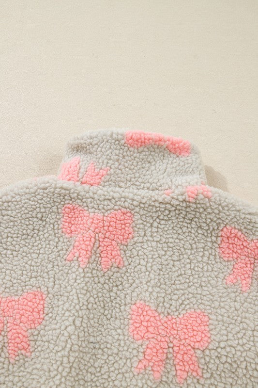 Valentine Bow Sherpa Quarter Zip Sweatshirt