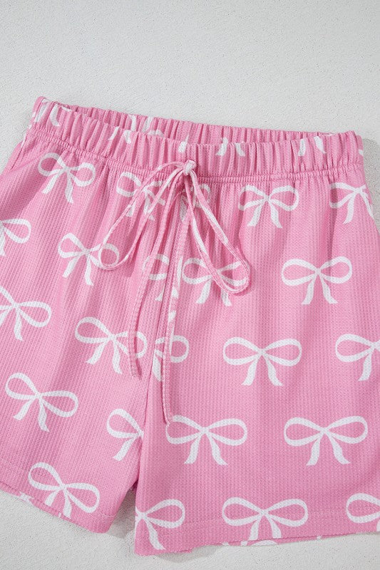 Valentine Bow Waffle Knit T-Shirt and Shorts Set