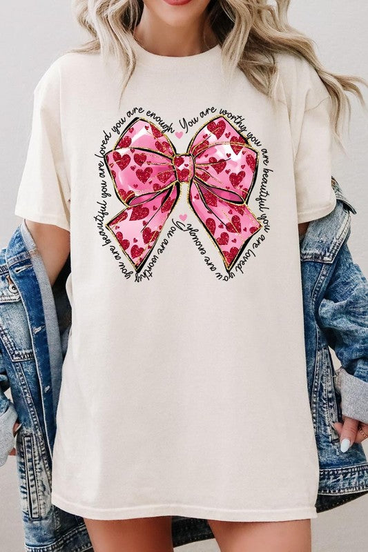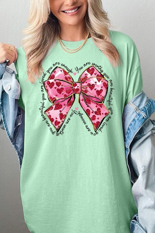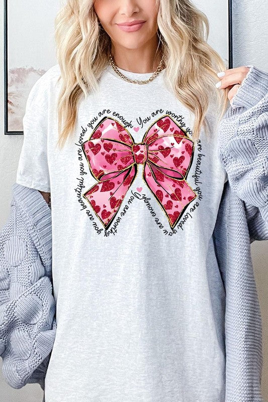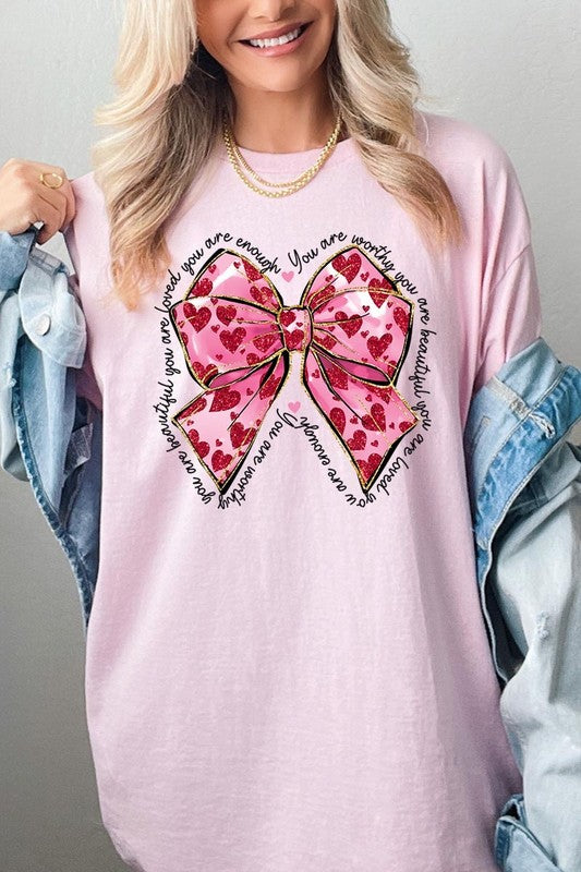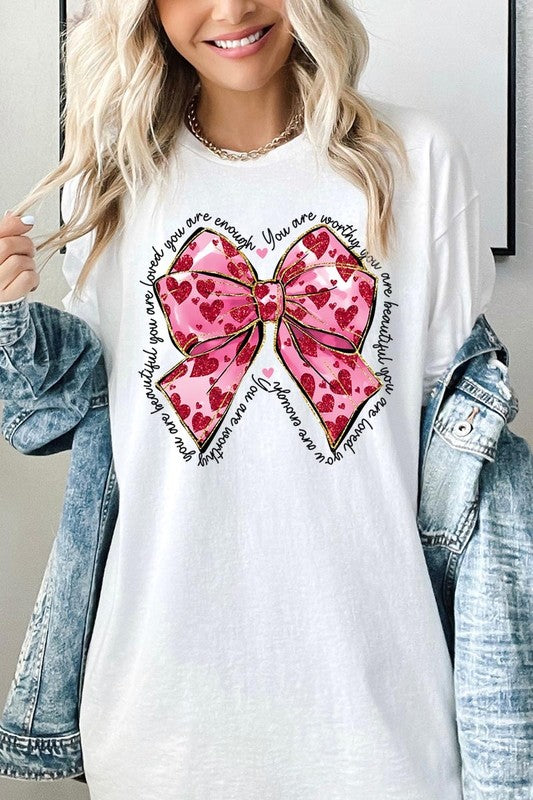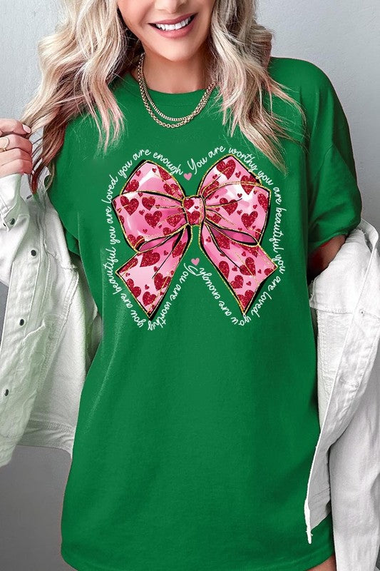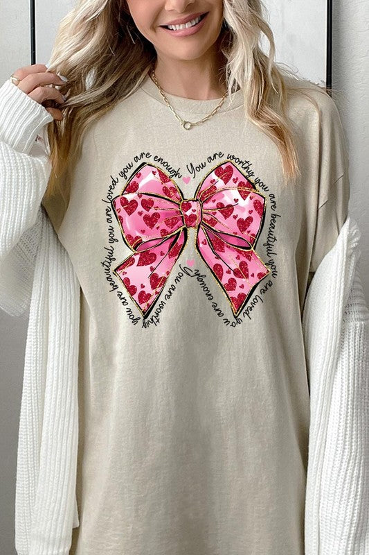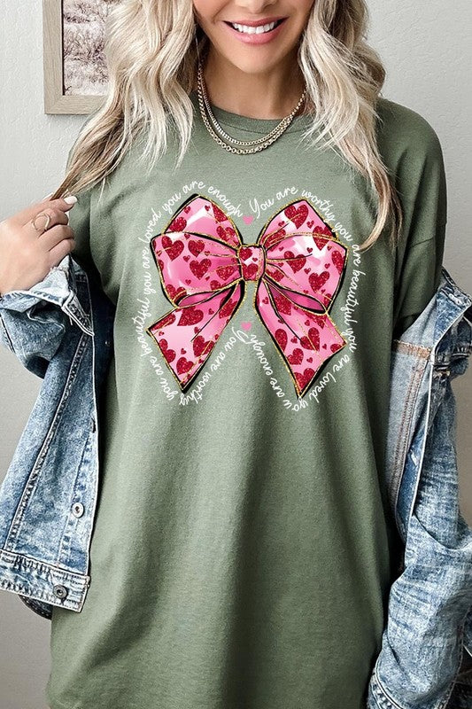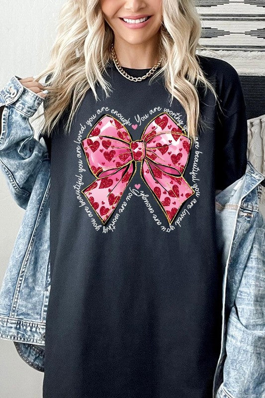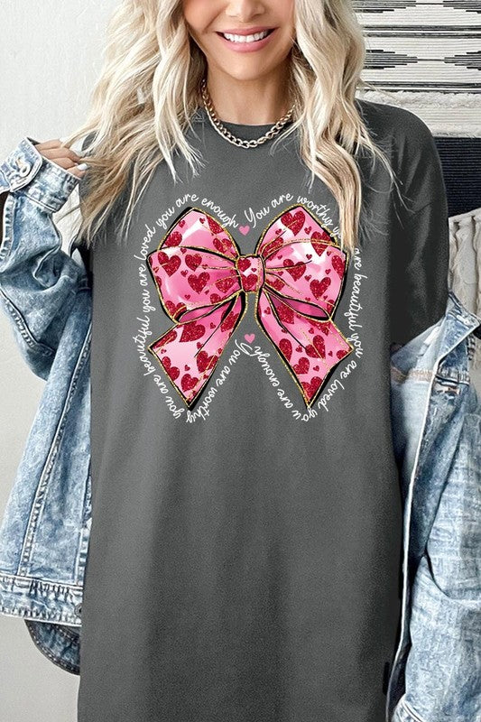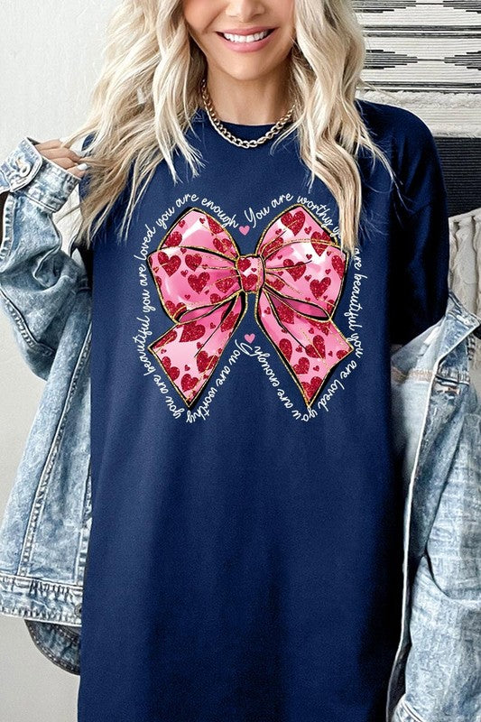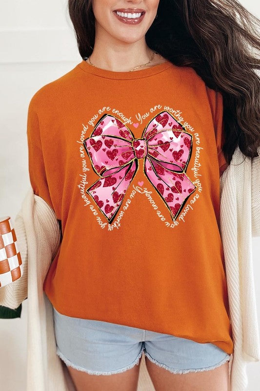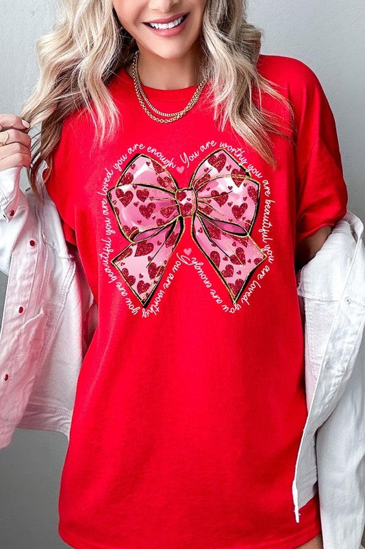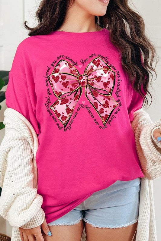 Valentine Bow You Are Faux Glitter Graphic Plus Heavy Cotton Tee. **PLUS SIZE**