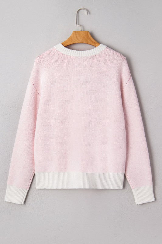 Valentine Bow Tie Cherry Drop Shoulder Sweater