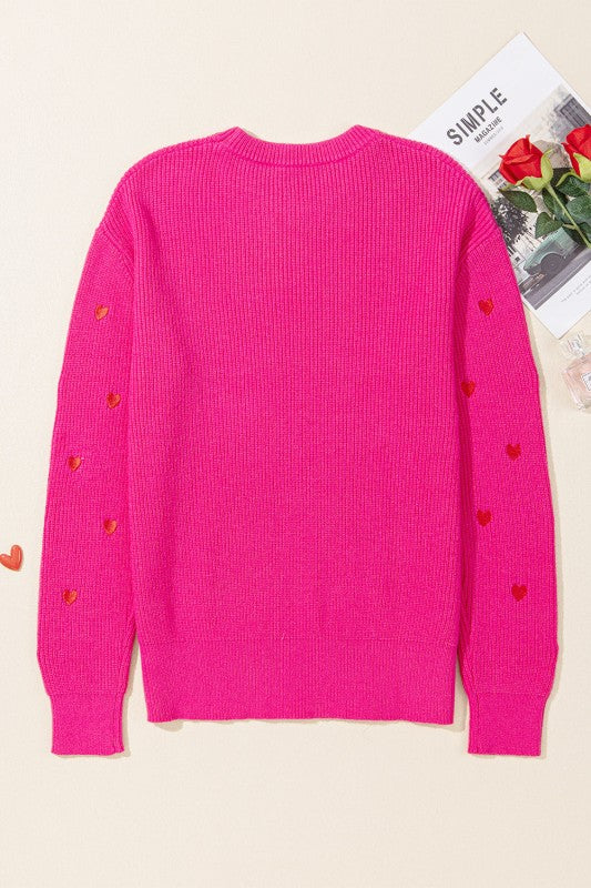 Wrap yourself in cozy charm with this sweater, where a playful pattern brings instant romance to your everyday look. The ribbed knit texture adds visual interest and a touch of sophistication, while the relaxed drop-shoulder silhouette keeps things effortlessly casual. Round neckline, long sleeves with snug ribbed cuffs, and a perfectly proportioned length make this piece a versatile wardrobe essential. Whether you're celebrating Valentine's Day, getting festive for the holidays, or simply wanting to spread a little love through your style, this sweater delivers warmth, comfort, and undeniable charm. Viscose/Polyester/Poly