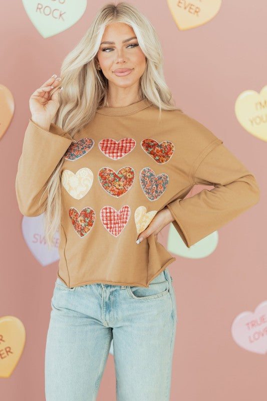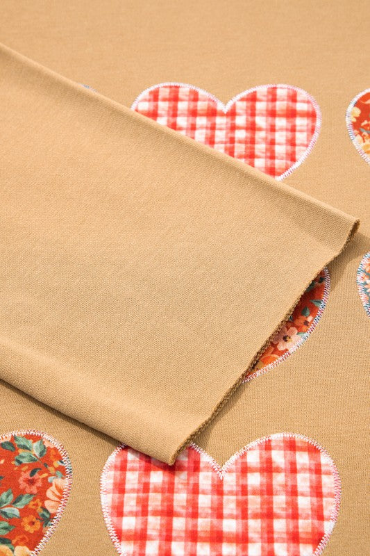 Valentine Heart Patchwork Reverse Seam Sweatshirt