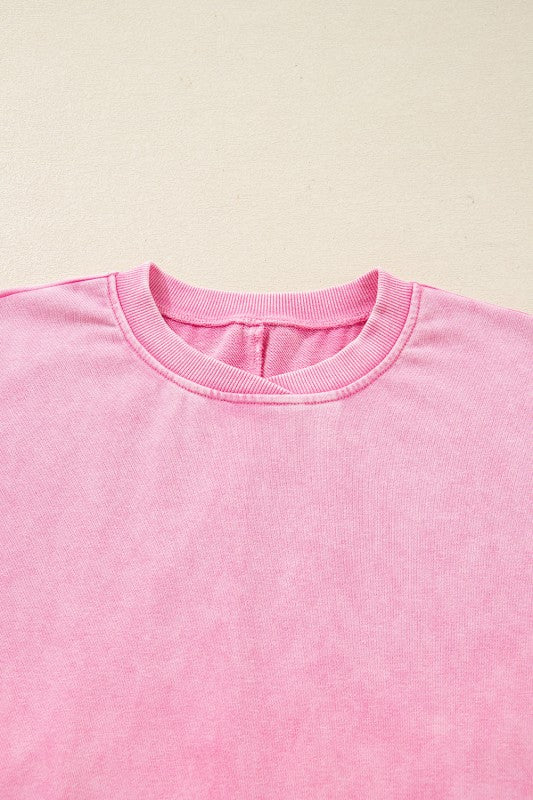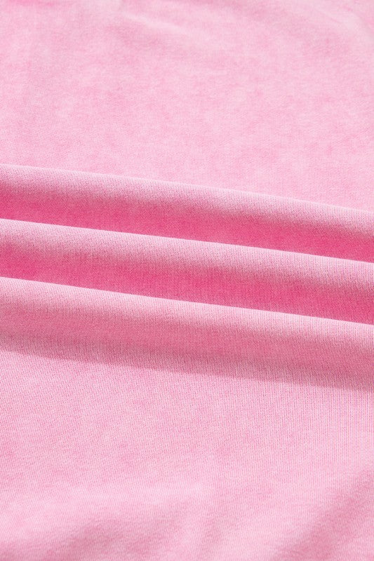 Wrap yourself in retro vibes with this fun mineral-washed sweatshirt that's giving major vintage energy! The bright pink hue gets that cool, lived-in look thanks to the mineral wash treatment, while the relaxed loose fit and drop shoulders make it perfect for ultimate comfort. A unique crossed detail at the crew neckline adds character, and classic ribbed trim at the cuffs and hem keeps everything polished. Whether you're lounging at home or heading out for casual adventures, this cozy cotton essential is your new go-to for effortless, playful style. Cotton/Polyester