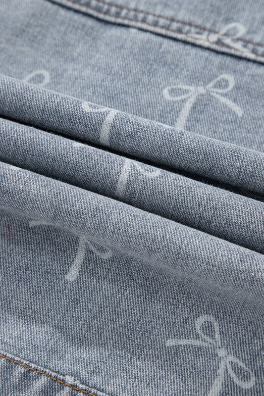 Denim Bow Light Wash Raw Hem Jacket