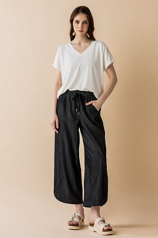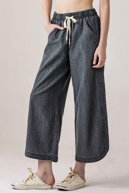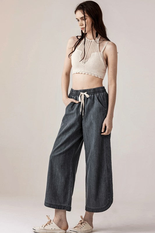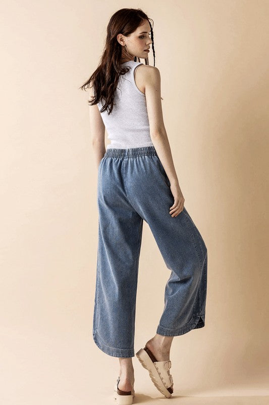 Plus Denim Wide Leg Crop Pants with Dolphine Tail