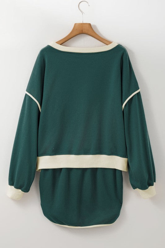 Embrace effortless style with this playful two-piece set featuring a loose pullover and trendy skirted shorts. The lace-up waist adds a chic touch, while drop shoulder sleeves keep the look fresh and relaxed. Perfect for those who love comfort without sacrificing fashion flair. Polyester/Cotton