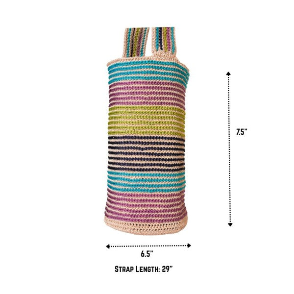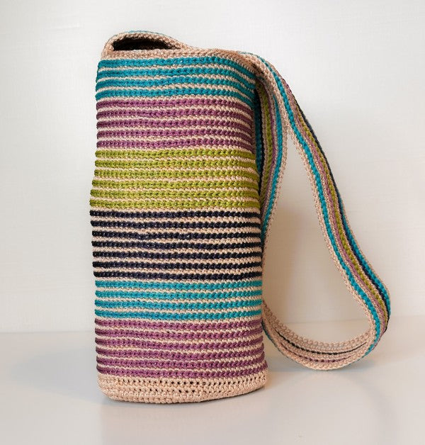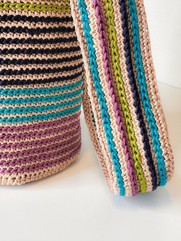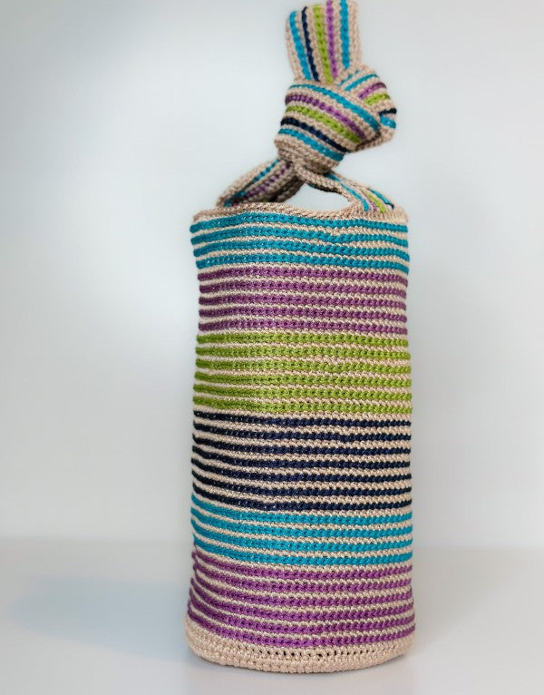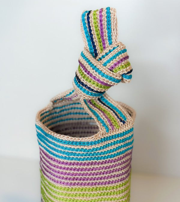 At first glance, Mildred dazzles with its joyful stripes and soft structure. But what makes it truly special is what lies beneath the surface: each stripe you see has been carefully embroidered by hand after the bag is crocheted, one by one, adding texture, intention, and time honored craftsmanship to every row.