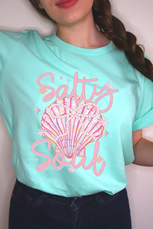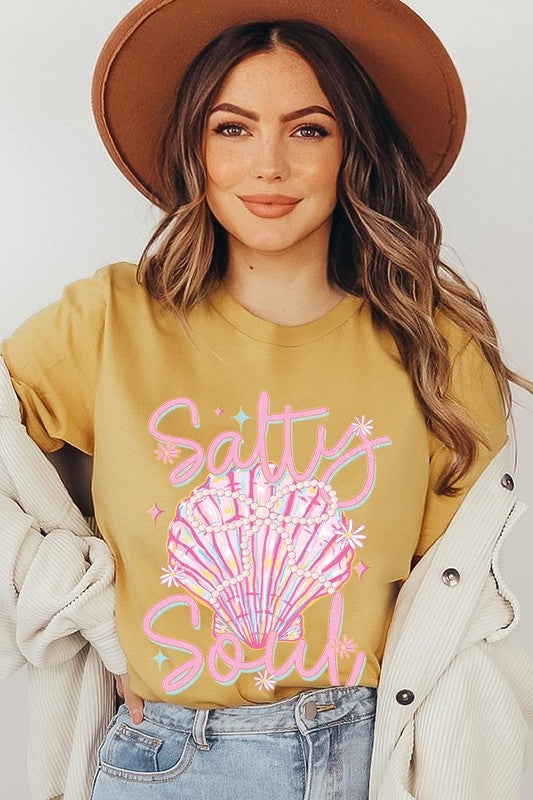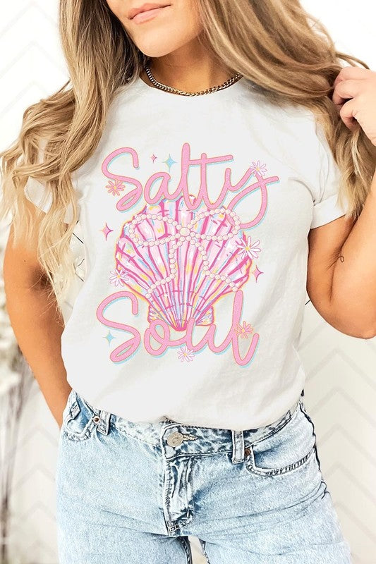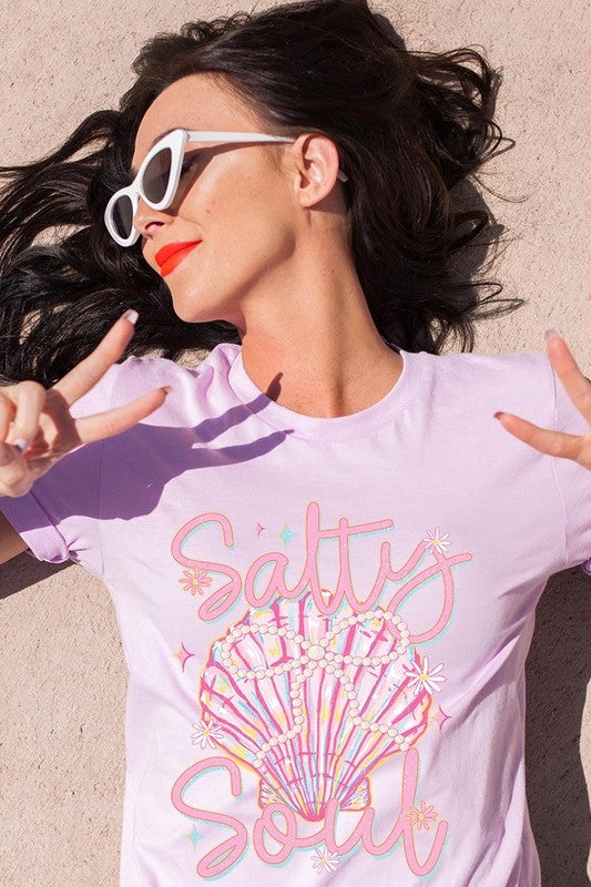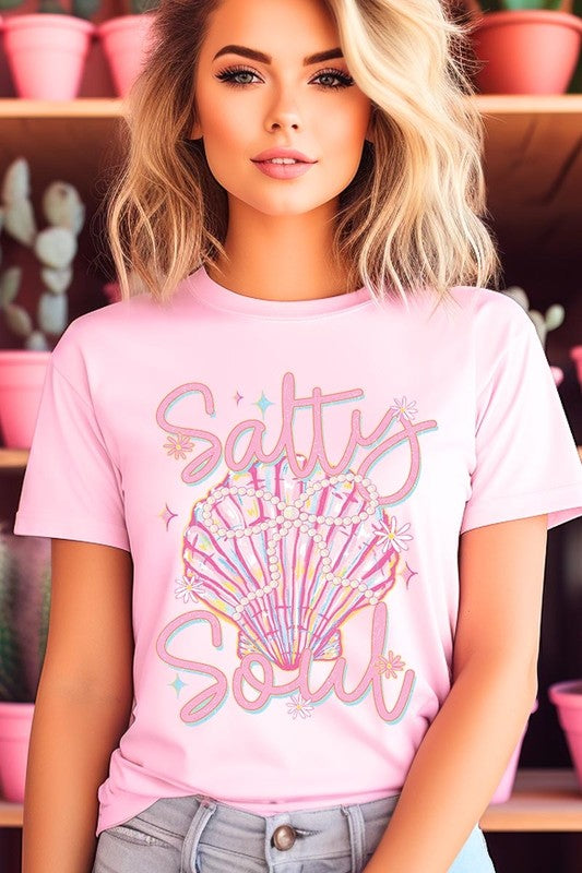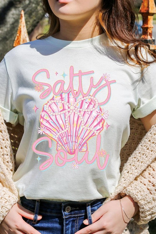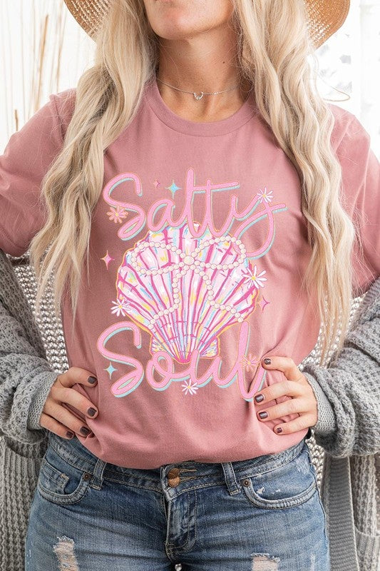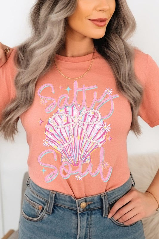 Clam Pearl Bow Salty Soul, Summer Vibes, Pink Clam, Summer Beach Graphic Tee.