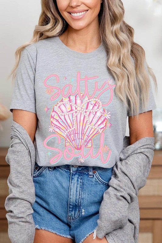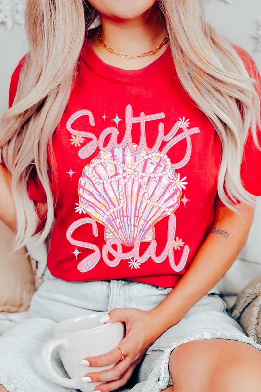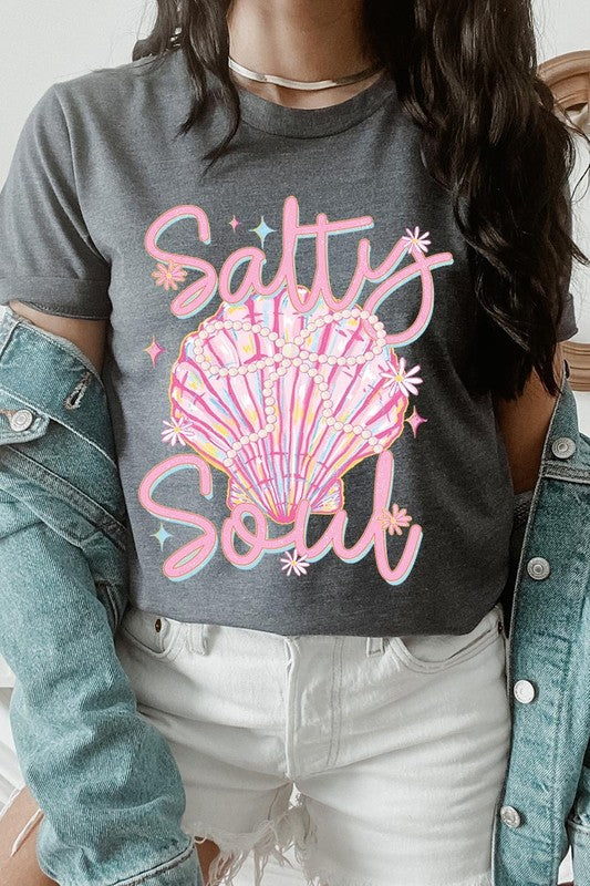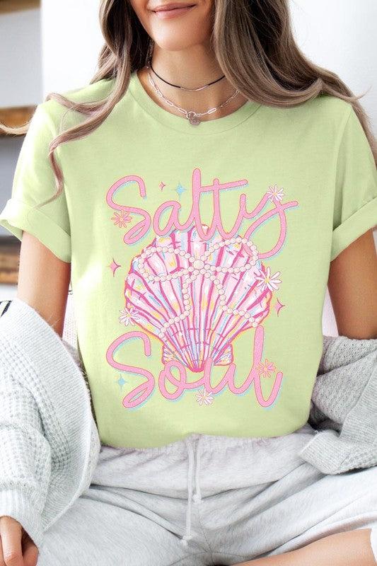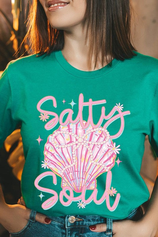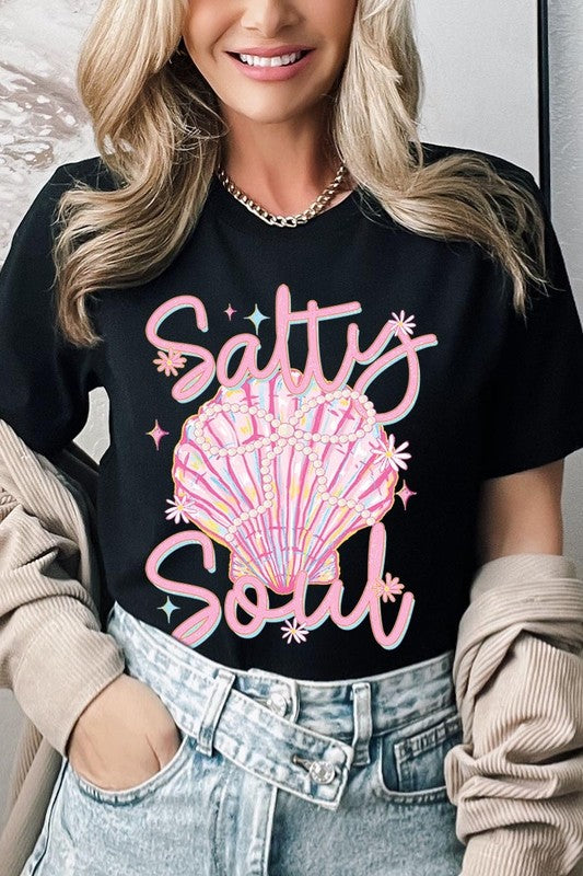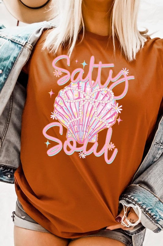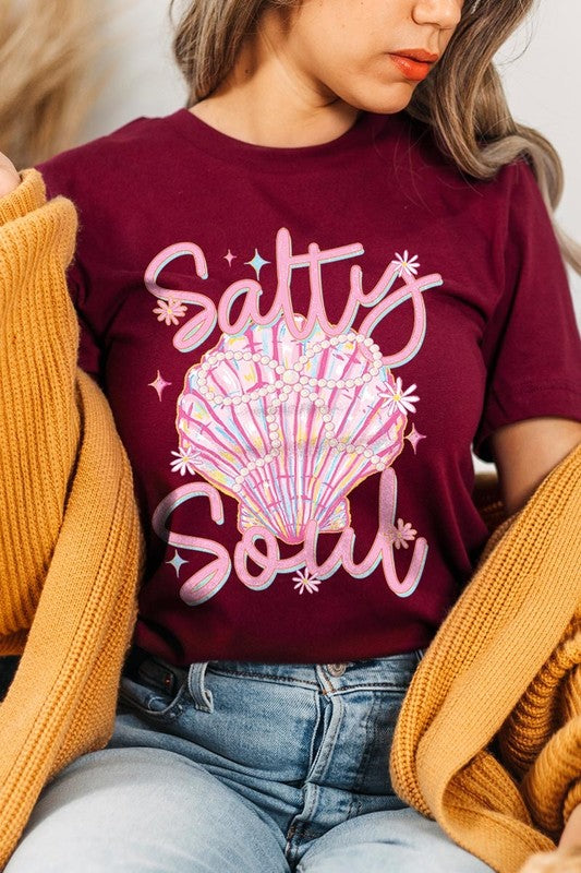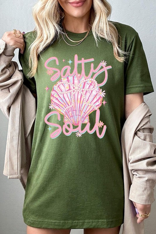 Clam Pearl Bow Salty Soul, Summer Vibes, Pink Clam, Summer Beach Graphic Tee.