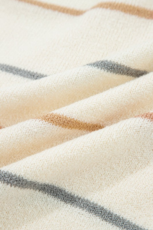 Stripe Buttoned V-Neck Cardigan Sweater