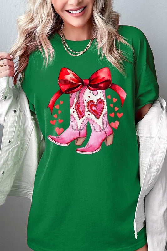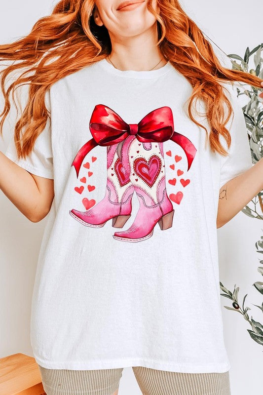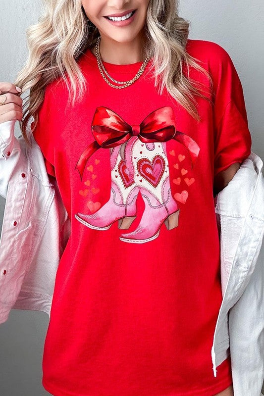 Valentine Cowgirl Boots Graphic Plus Heavy Cotton Tee. **PLUS SIZE**