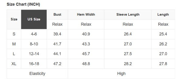 See size chart for approximate measurements.