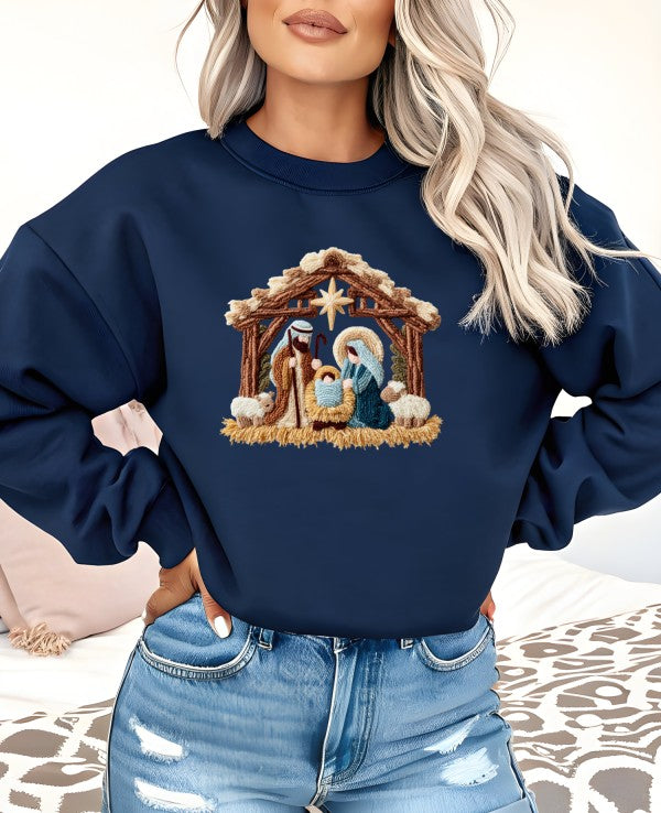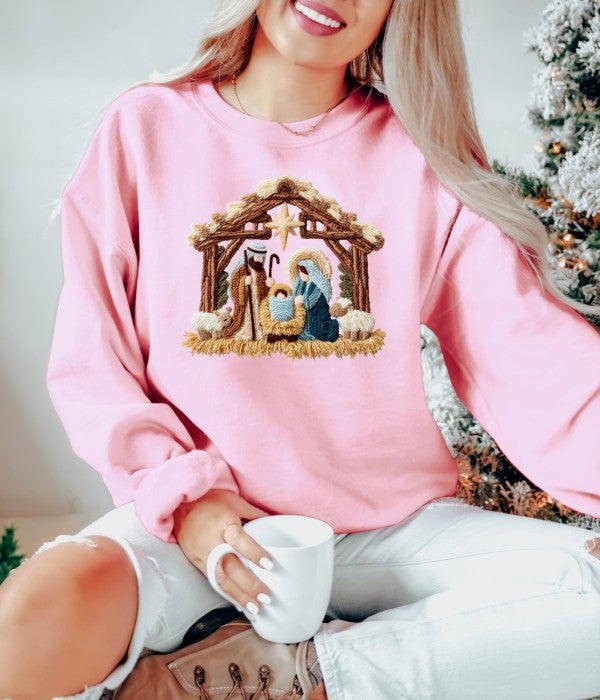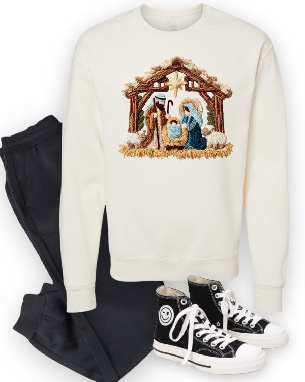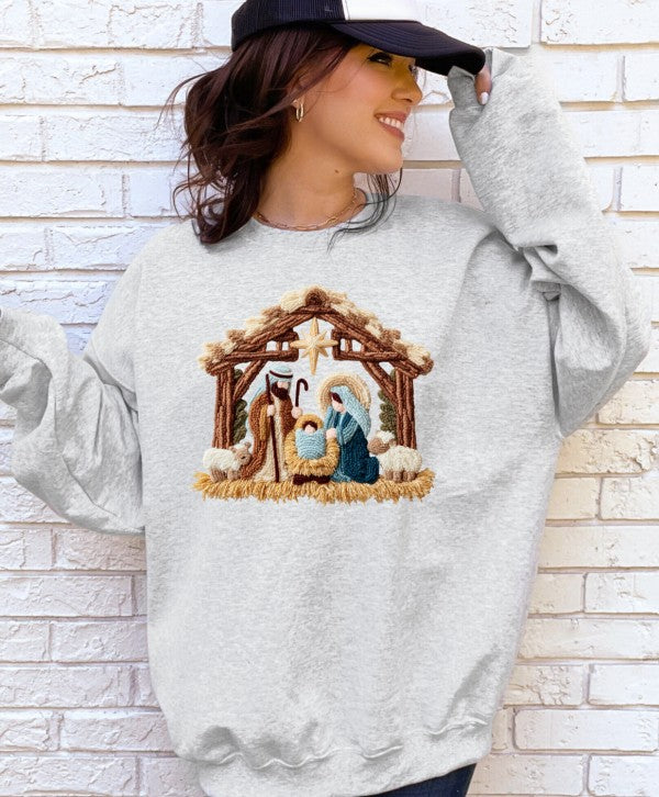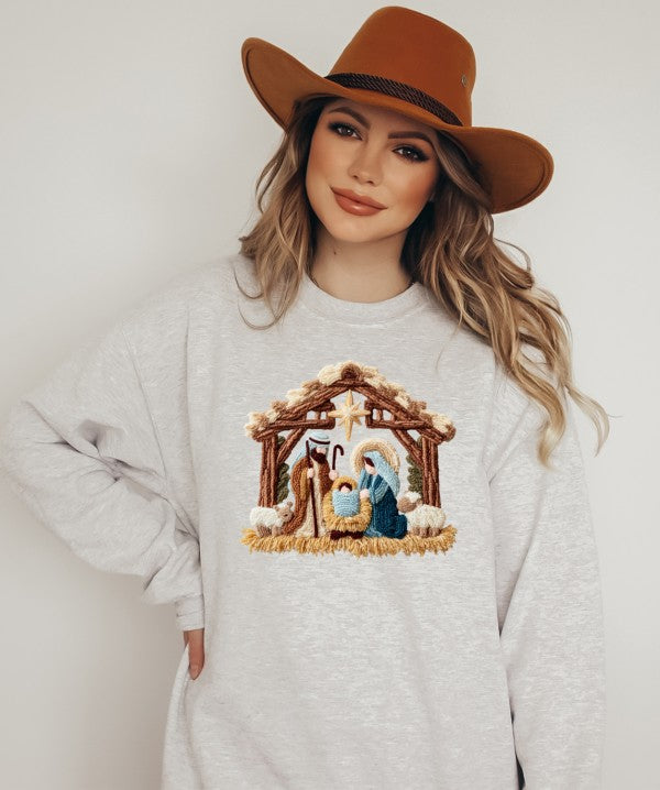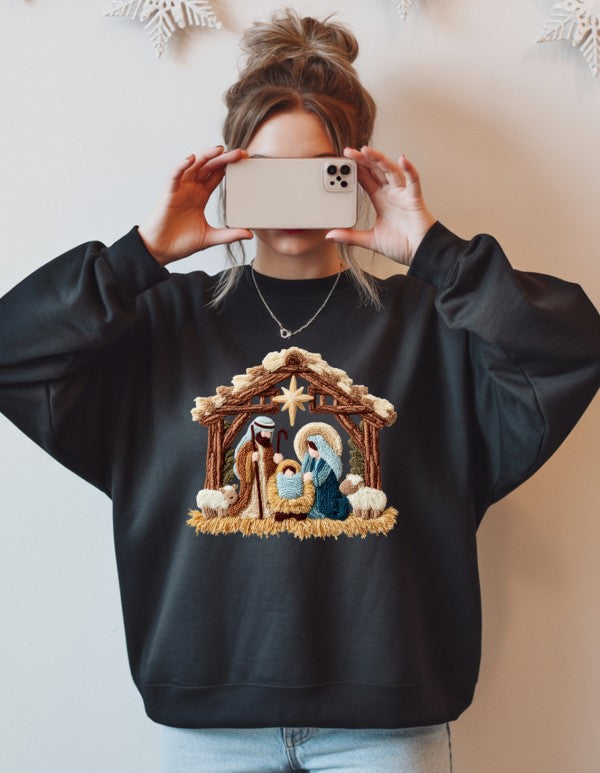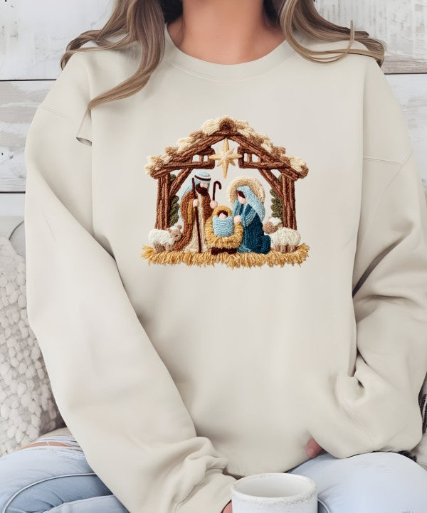 Latch Hook Nativity Scene Graphic Sweatshirt