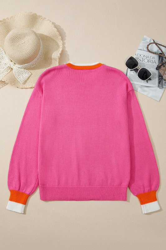 This sweater combines playful contrast neckline and cuffs with delicate pearled decoration for a touch of luxury. The relaxed shoulder design ensures cozy comfort while keeping your style effortlessly chic and fun. Perfect for staying warm without sacrificing flair. Acrylic/Cotton
