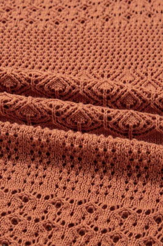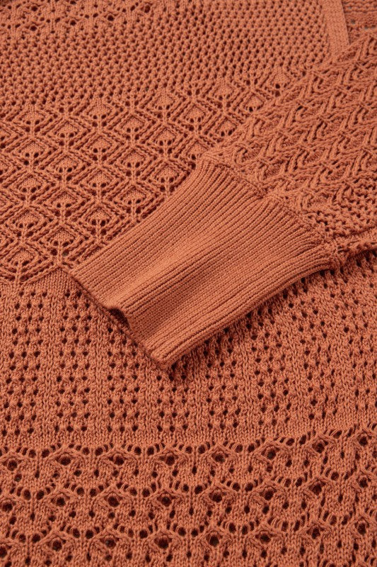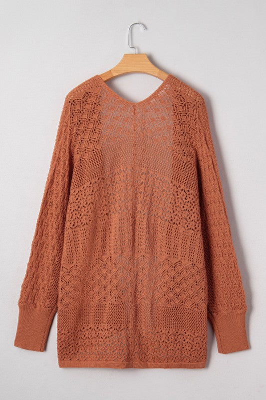 Plus Size Solid Pointelle Knit Open Front Cardigan