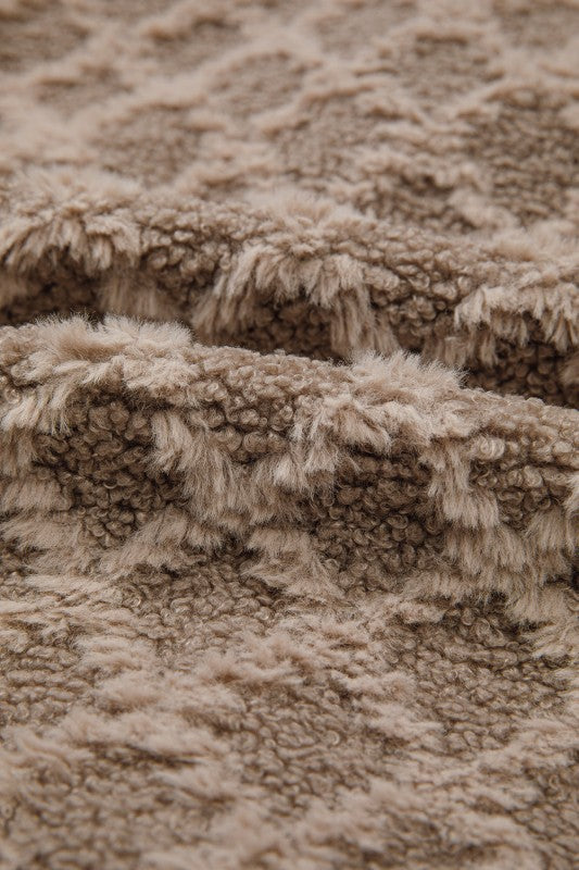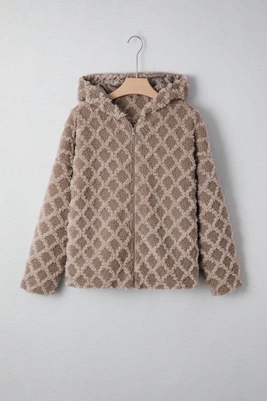 Sherpa Rhombus Textured Zip Up Hooded Jacket