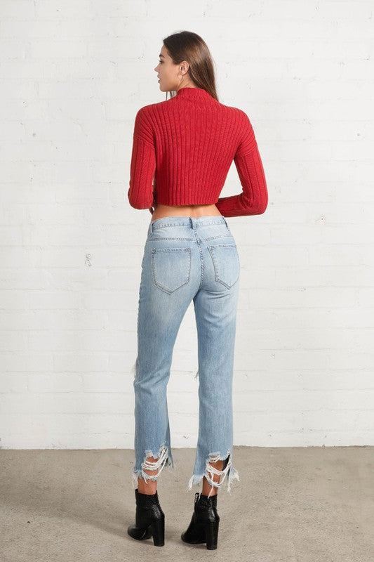 High Rise Cropped Straight Jeans