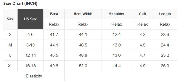 See size chart for approximate measurements